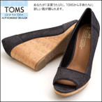 TOMS トムス レディース サンダル ウェッジソール オープントゥ STELLA BLACK DENIM ステラ コルク 正規販売店