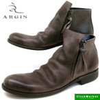 2.5mmのソフトレザーを使用したダブルジップのショートブーツです。 まず、目を引かれるのは左右についているファスナー部分のレザーリボン。 アッパーがシンプルなだけにいいアクセントになってくれます。 履いた時の不規則なシワと、ユーズド加工がカジュアル感を演出してくれて、 履き込むほどに味のでる上質なソフトレザーは長く風合いを楽しめます。 木型、素材感、デザインの3つの要素が見事にマッチしたARGISの中でも人気No.1のアイテムです。 天然皮革を染色しています。 ライニング(裏革)を使用していない一枚革仕立てのデザインのため 汗などでソックス等に色落ちすることがございます。 革の染まり具合・使用する部位・仕上げの固体差により商品画像と若干異なる場合がございます。 ★サイズについて★ 一般的なビジネスシューズのcm表記です。